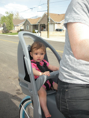 My darling little girl in her bike seat warms my heart. I LOVE her sweet tiny face! She loves riding on the bike. We bought a helmet for her and it barely fits her. Her head is just so tiny! She just sits behind me and talks and giggles. When the weather gets better we will be on the bike everyday!